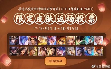 在王者荣耀游戏中四周年返场投票活动终于开始了,那么王者荣耀四周年返场投票怎么投呢?下面小编就为大家带来王者荣耀四周年返场投票方法介绍,跟小编一起去看看四周年返场投票吧。王者荣耀四周年返场投票方法介绍王者荣耀四周年返场投票怎么投呢?感的小伙伴就和小编一起来看看吧!2019限定皮肤返场投票活动什么时候