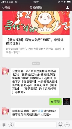 公主级卷一8-1关卡过关掉落的物品名为?8-1关卡玩法中掉落的物品相信许多小伙伴都已经不清楚有哪些了,今天的奇迹暖暖微信公众号玩法答案关于8-1玩法,不知道答案的小伙伴别着急小编这就为大家带来正确的答案!奇迹暖暖2018年10月20每日一题问题公主级卷一8-1关卡过关掉落的物品名为?(答案各式为qj