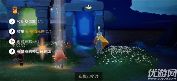 光遇6.6任务怎么做?光遇国服今天的日常任务是:和一位朋友击掌、收集橙色光、面对冥龙、在禁阁的神坛旁冥想,接下来小编要为大家带来的就是光遇国服6月6日每日任务完成攻略了,小伙伴们一起来看看吧!光遇6.6任务怎么做今日任务1、「和好友击掌」和一位好友做击掌动作,新好友需要花费蜡烛解锁动作。2、「追逐橙