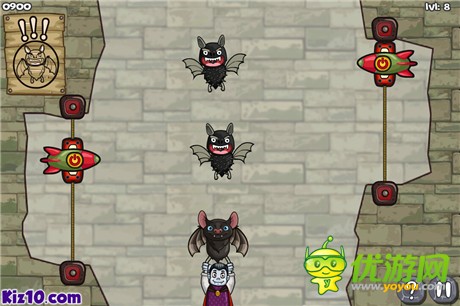 飞向自由的吸血鬼第八关怎么过?飞向自由的吸血鬼第八关过关步骤?接下来小编为大家详解一下:如图所示,利用炸弹,炸死邪恶蝙蝠!过关!善于用道具哦!