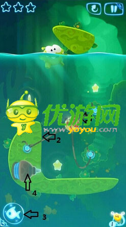 割绳子魔法第四章4-2关怎么通关;割绳子魔法第四章4-2关怎么过;割绳子魔法第四章4-2关通关攻略;按照顺序割断绳子,接着更换主角形态,再利用空气瓶将主角吹到右边星星的下方,最后恢复主角形态即可。