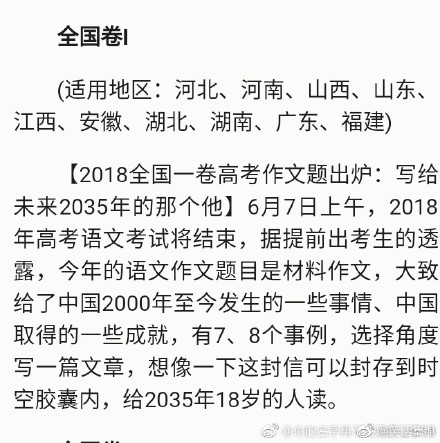 2018全国高考作文题目分享