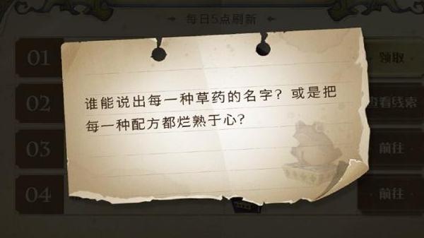 魔法觉醒9.19巧克力蛙位置在哪里?小伙伴们都在寻找巧克力蛙第五天的线索,而这次需要大家说出每一种草药的名字才能顺利找到NPC的具体位置哦,下面91小编为大家带来巧克力蛙NPC位置一览~哈利波特魔法觉醒9.19巧克力蛙位置在哪里?9月19日是哈利波特手游中巧克力蛙活动的第五天,今天给出的提示线索为: