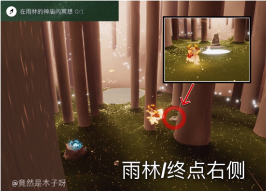 每日任务完成了吗?今天是8月19日的任务发布了。今天的任务比较简单,就让小编来带各位完成今天的任务吧。光遇8月19日任务怎么做?在雨林的神庙内冥想:冥想位置在雨林终点的右侧,具体位置如下图;在水母上恢复能量:当能量接近没有时,在任意水母上面回复能量;向一位玩家鞠躬;点燃20根蜡烛;
