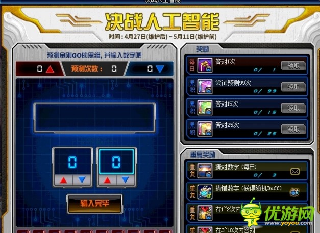 DNF5月5日的决战人工智能活动数字答案是什么呢?相信许多朋友都还不是很清楚,下面小编将在本篇文章中为大家带来DNF5月5日决战人工智能活动正确答案分享.5月5日数字答案敬请*,小编会在5月5日第一时间为大家带来了决战人工智能5月5日数字答案技巧:这类活动和我们玩过的猜数字一样,因此大家遵循相同的原
