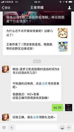 韩信-逐梦之影皮肤限时返场时间为6月23日到6月几日?这是王者荣耀微信公众号上2018年6月25每日一题问题,今天的王者荣耀答案可是非常简单的,答案就是最新活动玩法时间,小编这就为大家分享下韩信-逐梦之影皮肤限时返场时间为6月23日到6月几日答案,希望对大家有帮助。2018王者荣耀6月25每日一题问