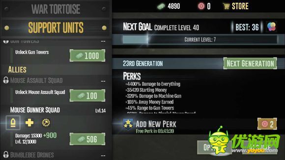 战龟wartortoise枪架和迫击炮怎么使用;战龟wartortoise枪架和迫击炮用法分享;第二武器都是自动攻击。枪架是当敌人靠近时副机枪自动攻击敌人,比如中期大批跳蛙快速靠近时特别有用;迫击炮是自动向远方发射炮弹,对敌人造成范围性伤害。