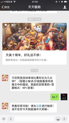 万花筒竞技场单场比赛时长为几分钟?天天酷跑万花筒竞技场玩法是游戏中参与玩家比较多的活动之一,相信不少小伙伴都在体验着万花筒竞技场的各种玩法,下面就让小编和大家看下今天的微信公众号答案。2018天天酷跑12月17日一题题目万花筒竞技场单场比赛时长为几分钟?2018天天酷跑12月17日一题答案(答题小秘