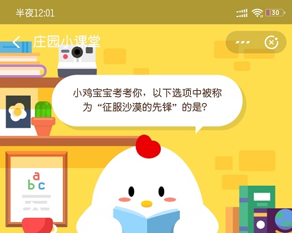 “小鸡宝宝考考你,以下选项中被称为“征服沙漠的先锋”的是?”支付宝蚂蚁庄园小课堂每日一题12月13日,被称为征服沙漠的先锋的的先锋是谁?被称为征服沙漠的先锋的的先锋是梭梭树吗~蚂蚁庄园小课堂12月13日问题答案小鸡宝宝考考你,以下选项中被称为“征服沙漠的先锋”的是?A、青青草原B、梭梭树正确答案是: