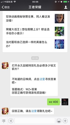打开永久回城特效礼包必得多少铭文碎片,这是王者荣耀微信公众号上2018年5月1日每日一题问题,相信各位王者荣耀的网友都使用过铭文碎片吧,今天的每日一题答案可是很简单的哦,小编这就为大家分享下打开永久回城特效礼包必得多少铭文碎片的答案,希望对大家有帮助2018王者荣耀5月1日每日一题问题打开永久回城特