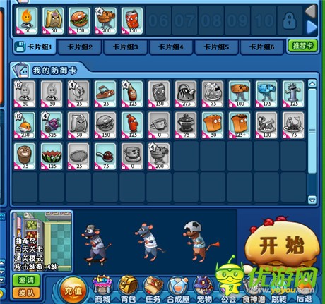 美食大战老鼠曲奇岛怎么过?美食大战老鼠曲奇岛过关配置?美食大战老鼠曲奇岛BOSS怎么打?接下来小编为大家详解一下:曲奇岛配置0星火炉、4星双层、0星火盆、0星可乐面粉汉堡包(可用酒瓶代替)要是有咖啡粉带上酒杯开水这就不用多说了刚开始比较缺火放4排火炉汉堡包位置换成火盆,图片为最终阵型请自觉把汉堡包当