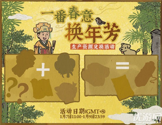 江南百景图一番春意换年芳怎么玩?江南百景图手游今天开启了【一番春意换年芳】生产资源兑换活动,玩家只需搜集指定的生产类资源即可兑换相应奖励。下面就是一番春意换年芳活动玩法攻略了,一起来看看吧!江南百景图一番春意换年芳怎么玩【一番春意换年芳】生产资源兑换活动活动日期:1月7日11:00~1月9日23:5