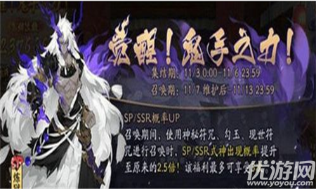 阴阳师鬼手之力集结召唤活动怎么玩?今天阴阳师更新之后,上线了很多好玩的玩法。鬼手之力集结召唤活动就是其中之一,很多玩家不知道怎么玩。下面小编就来给大家介绍下活动玩法。阴阳师鬼手之力集结召唤活动玩法攻略SP/SSR概率超绝UP召唤期间SP/SSR式神出现概率提升至原来的2.5倍!每位大人可享受3次SP
