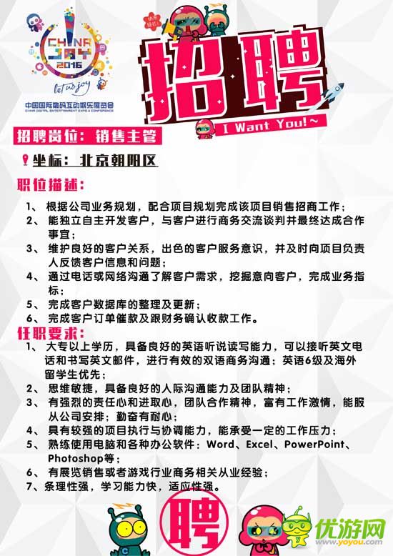上周的这个时候,我们发布了一条招聘启事——仅仅一周时间,就有大波小伙伴踊跃前来报名,让我们开心地度过了一个疯狂三月!2016年第十四届ChinaJoy的准备工作正在如火如荼进行中,今年我们依然会相聚上海,体验狂欢的盛宴。鉴于不少小伙伴通过各种方式向我们表达了非常强烈的入伙愿望,为了满足大家的需求,今