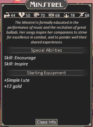ForTheKing吟游诗人minstrel怎么样好用吗?下面小编为大家带来ForTheKing吟游诗人minstrel技能属性详解:吟游诗人天赋型角色,数值与学者类似,某种意义上也能转型成智力型角色。天赋技能1:鼓舞,友方发动攻击时一定概率发动,让一枚错误的骰子变正确。天赋技能2:激励,回合结束时