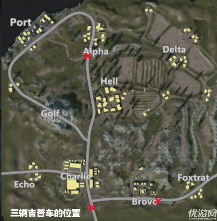 放逐游戏大逃杀吉普车怎么吃鸡?放逐游戏大逃杀吉普车吃鸡攻略、是不是有很多小伙伴不知道,那些还不知道,还不清楚的小伙伴快来和小编一起来看看吉普车吃鸡大法《来源:我跑的可快了》话不多说,直接上教程下图打叉的是吉普车的位置在飞机上估计位置,直接降落到吉普车旁边然后上车,选择猥琐,或者直接飙车撞人最稳当的是