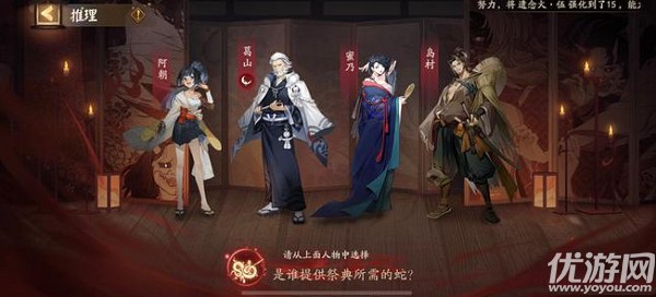 阴阳师是谁提供祭典所需的蛇?这是【灵识追凶】异变第二天任务,这道题的正确答案是阿朝,那么我们该如何整合线索进行推理呢?下面就是阴阳师夜刀神活动推理答案大全了,大人们都来参考一下编编的流程吧!阴阳师是谁提供祭典所需的蛇推理目标:祭典仪式祭品中的“蛇”是谁提供的。阴阳师阿朝提供祭典所需的蛇。线索整理很简