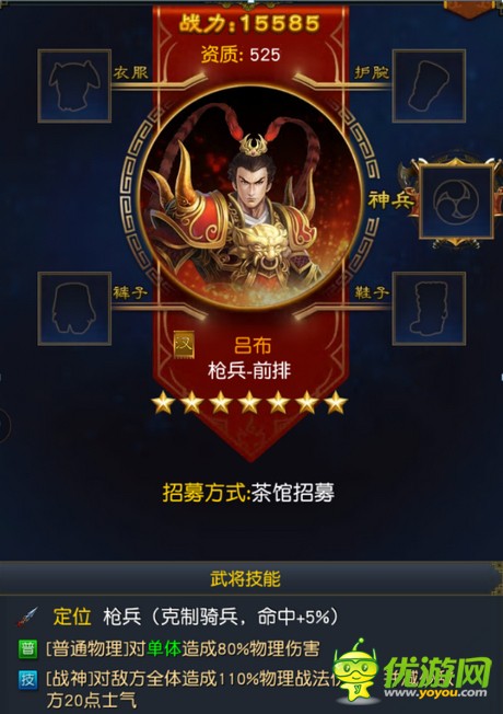 终于说到玩家们最关注的武将玩法了,武将既是历史中有名有姓的着名人物也是游戏中玩家需要重点培养的角色,本文将要介绍游戏中的武将及其养成方式。游戏将武将们分为了七个星级,骑兵、枪兵、步兵、弓兵、法师、投石车等六个兵种,根据阵型站位分为前排和中后排。武将获得方式:茶馆招募、各品级的军功宝箱、武魂商店、累计