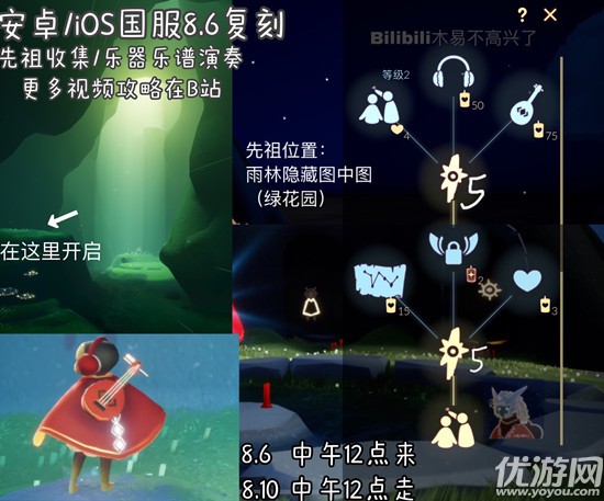 光遇8月6日先祖在哪里?光遇本周四降临的旅行先祖为我们带来的是红色耳机、尤克里里、乐谱和摸头动作。那么,这位复刻先祖会在什么地方呢?下面就是光遇8月6号先祖位置介绍了,小伙伴们现在就可以开始攒蜡烛了。光遇8月6日先祖在哪里位置:雨林隐藏图中图(绿花园)本周四中午12:00双平台旅人们的下一位旅行先祖
