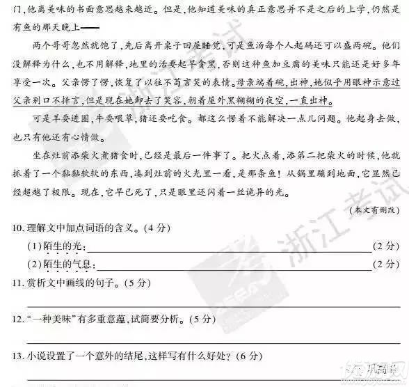 浙江高考语文阅读理解巩高峰《一种美味》阅读理解答案什么?浙江高考语文阅读理解巩高峰《一种美味》的阅读理解问题答案是什么?还不知道的小伙伴就来看看下面小编为大家带来的解答吧:《一种美味》阅读理解10理解文中加点词语的含义(4分)原作者巩高峰:(1)陌生的光:母亲那一辈人,每年过年过节才能有机会吃一次鱼