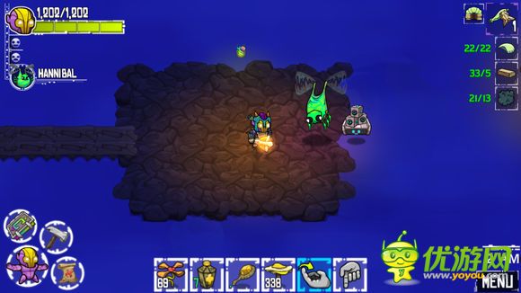 崩溃大陆Crashlands花仙子任务怎么完成;做一个任务,让我去一个岛,上了岛之后楼主手贱把岛上的花都摘了,结果任务居然是让我根据花的方向确定任务的地点,怎么办;其实很简单;往左走,在那个正方形的湖的左边的岸中央中间有一朵发光的花,从花的方向往右直走就会触发剧情,貌似还有点远附上自己刚做的装备,增