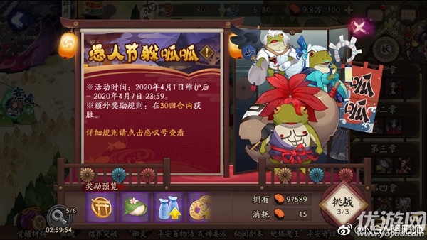 阴阳师愚人节躲呱呱活动入口在哪?愚人节躲呱呱是阴阳师手游2020年的愚人节专属活动,该活动会从4月1日开放到4月7日,期间小伙伴们挑战成功就能得到愚人节躲呱呱徽章,徽章可用于兑换各种奖励。下面就让我们一起来看看愚人节躲呱呱活动地址在哪里吧!阴阳师愚人节躲呱呱活动入口在哪活动入口:前往探索地图的活动入