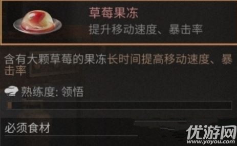 明日之后草莓果冻食物怎么做,明日之后玩家所要食用各种食物来补充战斗力,许多食物都是加血量的,是生存下去居家必备的,其中草莓果冻食物许多玩家都在好奇该怎么制作,下面和小编了解下明日之后草莓果冻食物配方介绍。明日之后草莓果冻食物配方介绍名称:草莓果冻隶属:食物作用/属性:提升移动速度、暴击率。配方/必须