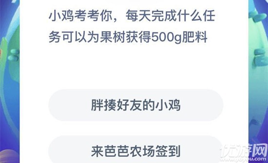 小鸡考考你,每天完成什么任务可以为果树获得500g肥料