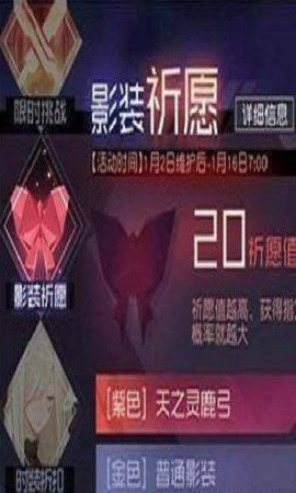 永远的7日之都天之灵鹿弓怎么得?永远的7日之都最新上线了影装祈愿活动,玩家只要完成任务即可获得天之灵鹿弓紫色稀有影装。下面小编就来给大家详细的介绍下天之灵鹿弓的获得方法。永远的7日之都天之灵鹿弓获得攻略2019年1月2日更新后——2019年1月16日7:00「影装映射」中新增
