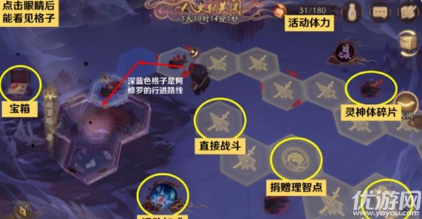 阴阳师深渊捐赠在哪里?在世界活动【天魔归来】中,我们可以通过捐赠、委派和战斗战令方格,这三种方法得到的收益不同,其中捐赠收益最低,比较适合新手玩家或小号。下面就是阴阳师深渊捐赠进入方法及收益介绍了,一起来看看吧!阴阳师深渊捐赠在哪里方法:点击地图上的【眼睛】标识(位于屏幕右边),将其关闭后格子上就会