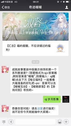 成就故事套装中按展示排序的第一个系列套装是,这是奇迹暖暖微信公众号2018年6月28每日一题问题,奇迹暖暖微信公众号各种游戏福利等着大家来领取,小编这就为大家分享下成就故事套装中按展示排序的第一个系列套装是答案,希望大家喜欢。奇迹暖暖2018年6月28每日一题问题成就故事套装中按展示排序的第一个系