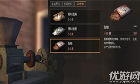 明日之后鱼粮怎么得?很多明日之后游戏玩家都在养鱼,当然养鱼是需要鱼粮去喂养的。不过还是有很多玩家并不知道鱼粮的制作方法,下面小编就来给大家详细的介绍下明日之后鱼粮获得方法。明日之后鱼粮获得攻略制作所需:小麦*4想要制作出鱼粮,只需要四个小麦就可以制作出一个鱼粮了,而制作的机器就是农产品制作机,在制作