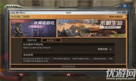 明日之后不明生物在哪?在明日之后的游戏的地图中会经常刷出一些不明生物,只有玩家合力才能打败,然后参与击杀的玩家就可以领取丰厚的奖励。下面小编就来给大家介绍下明日之后不明生物位置。明日之后不明生物详解玩法介绍:各地区出现不明生物,需要多名玩家齐心协力去击败,击败可获得奖励刷新时间:目前在秋日森林、白树
