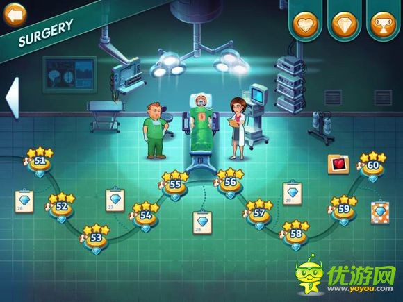 中心医院2新手怎么玩?中心医院2新手攻略心得分享?接下来小编为大家详解一下:前面4关还好,到第五关开始就变难了,有些关要重复玩几次才能过,第六关更是某些关卡简直烦人,要三星+钻石难度不小。小游戏的话,一个扫描病灶(红点),这个要听声音,但有时候运气不好,硬是找不到;一个是骨骼显影的那个,左边有若干小