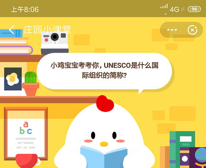 “小鸡宝宝考考你,UNESCO是什么国际组织的简称?”蚂蚁庄园小课堂开课啦,9月20日的问题是关于UNESCO是什么国际组织的简称,那么有没有小伙伴知道答案呀?不清楚的话就跟小编去看看吧。蚂蚁庄园小课堂9月20日问题答案小鸡宝宝考考你,UNESCO是什么国际组织的简称?A、联合国科教文组织B、联合国