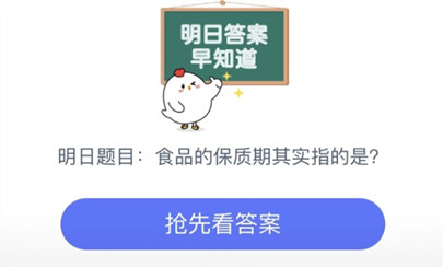 食品的保质期其实指的是?最后可食用期;最佳食用期。这是支付宝蚂蚁庄园2020年7月14日每日一题的问题,小伙伴们知道食品保质期指的是最后的食用期限还是最佳的食用期限吗?下面就是编编为大家带来的正确答案了,一起来看看吧!蚂蚁庄园7月14日每日一题答案问题:食品的保质期其实指的是?最后可食用期最佳食用期