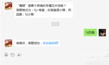 “鹰眼”是哪个英雄的专属芯片技能?答题格式为:hj+答案,如答案是小雅