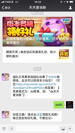 组队打周赛拿到团队收集了10000铜锣烧,全员可以获得多少钻石?天天爱消除周赛玩法中需要玩家组队进行铜锣烧的收集,相信不少小伙伴都已经对周赛的各种规则制度玩法非常熟悉了,今天的答案可以接着往下看。2018天天爱消除12月15日问题组队打周赛拿到团队收集了10000铜锣烧,全员可以获得多少钻石?201