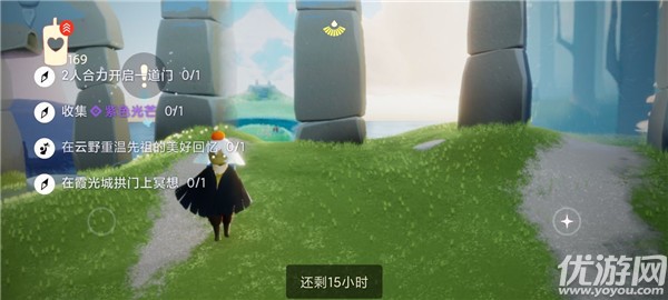 光遇9.15任务怎么做?光遇国服今天的日常任务是:2人合力开启一道门、收集紫色光芒、在云野重温先祖的美好回忆、在霞光城拱门上冥想,综合来看本月劳模非指尖蝴蝶先祖莫属啦。接下来就让我们一起来看看全部的任务流程吧!光遇9.15任务怎么做今日任务1、「二人合力开门」开启一道双人门。2、「收集紫色光芒」禁阁