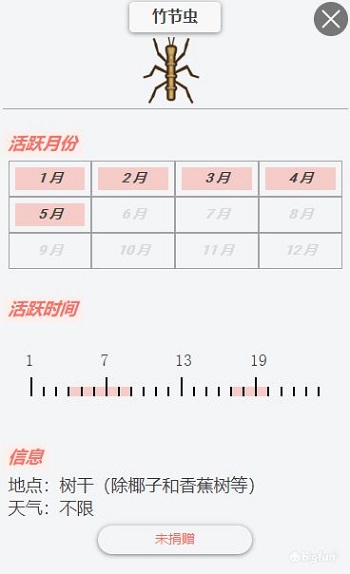 动物之森竹节虫怎么抓?现在是动物之森中竹节虫活跃的时候,但因为这种昆虫具有很好的隐蔽所以很难被发现,导致很多玩家都没有成功捕获过它。今天小编要为大家介绍的就是动物之森竹节虫捕捉方法了,一起来看看吧!动物之森竹节虫怎么抓图里的信息是错的,亲测是可以刷在椰子树干上的。竹节虫和皇蛾一样,是直接趴在树干上,
