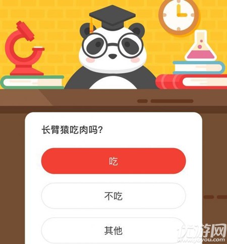 长臂猿吃肉吗?吃、不吃、其他。这是森林驿站7月3日森林小课堂每日一题的题目,小伙伴们知道长臂猿的饮食习惯吗?长臂猿是否会吃肉呢?下面就是小编为大家带来的森林驿站7月3日每日一题答案了,大家一起来看看吧!森林驿站7月3日每日一题答案问题:长臂猿吃肉吗?吃不吃其他答案:吃答案解析长臂猿食物以浆果为主,也