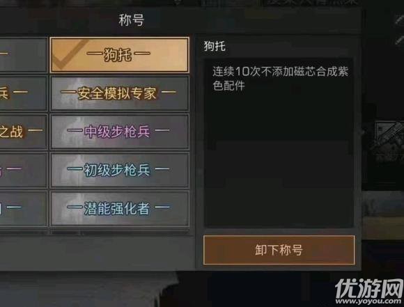明日之后狗托称号怎么获得?「狗托」是游戏中最新推出的称号,听起来还蛮有意思的,获取方法也不难,只要连续10次不添加磁芯合成紫色配件就行。下面就是具体的狗托称号获取方法了,大家一起来看看吧!明日之后狗托称号怎么获得1、狗托称号需要玩家连续10次不添加磁芯合成紫色配件。2、这个真不难,准备好30个2阶蓝
