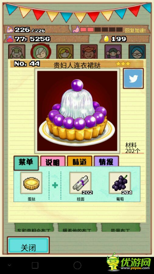 大繁盛满腹市场食谱44配方是怎样的呢?大繁盛满腹市场食谱44怎么做呢?感兴趣的玩家快来跟优游小编一起看看大繁盛满腹市场食谱44配方吧:在大繁盛满腹市场食谱44的配方主要是蛋挞+挂面+葡萄,具体如下图: