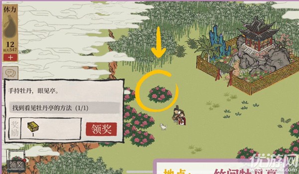 江南百景图竹间牡丹亭怎么触发?本期探险任务之一是“找到看见牡丹亭的方法”,系统提示为“手持牡丹,眼见亭”,所以我们想要触发这个建筑还需要采集牡丹花。下面就是具体的操作方法了,一起来看看吧!江南百景图竹间牡丹亭怎么触发任务:到看见牡丹亭的方法提示1:手持牡丹,眼见亭。提示2:六簪牡丹访亭台操作方法:采