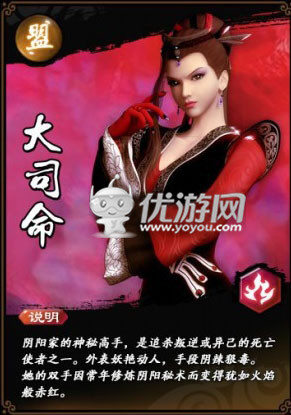 新泰时明月大司命怎么样;新泰时明月大司命人物详解;身 份:阴阳家五大长老之一所 属:阴阳家专 属:幽冥法冠技 能:六魂恐咒,骷髅血手印,阴阳合手印特 性:输出,群攻位 置:后排内力输出获 取:酒馆,石林,奇遇,商店