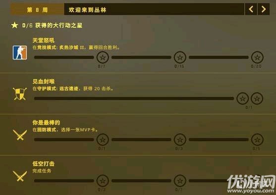 CSGO狂牙大行动第八周任务“欢迎来到丛林”已经更新,本组任务一共四个,分别是天堂怒吼、见血封喉、你是最棒的、低空打击。今天小编为大家带来的就是狂牙大行动第八周任务完成攻略了,一起来看看吧!CSGO低空打击指定喷漆位置介绍低空打击在远古遗迹指定位置喷漆。共可获得3颗大行动之星,累积满3,7,10次各