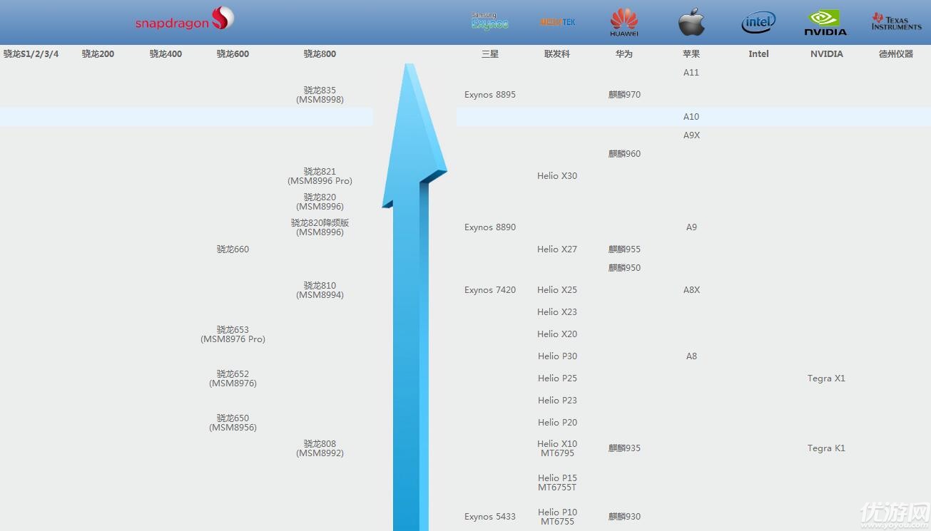 2018手机CPU天梯图分享!在全球玩家*中,2018年正式到来,新的一年里手机CPU性能排行天梯图会是怎样的?在目前2018年1月,手机CPU性能排名如何呢?哪些CPU性能值得*?这就快来看看最新的2018手机CPU性能排行天梯图吧。2018手机CPU天梯图2018手机CPU天梯图-第一梯队201
