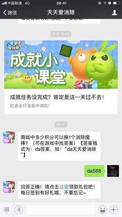 商城中多少积分可以换1个消除魔棒?这是天天爱消除微信公众号2018年7月19每日一题问题,今天的答案是游戏中商城玩法的内容,小编这就为大家分享下商城中多少积分可以换1个消除魔棒答案,希望对大家有帮助。2018天天爱消除7月19日一题问题商城中多少积分可以换1个消除魔棒?2018天天爱消除7月19每日