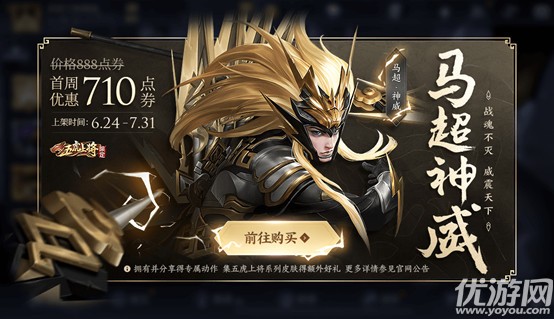 王者荣耀马超神威专属个性动作御枪怎么得?马超的五虎上将皮肤神威会在明天上架,这款皮肤的专属动作叫做御枪,相信很多召唤师都会喜欢。那么,我们该如何获取这个动作呢?下面就是马超个性动作御枪获取方法了,一起来看看吧!王者荣耀马超神威专属个性动作御枪怎么得马超-神威五虎上将限定皮肤即将上架“战魂不灭,威震天
