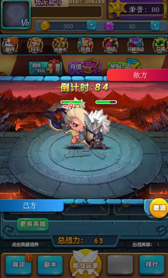 真人实时pk《超级大乱斗h5》今日首发上线,游戏简单粗暴,在线实时pvp对战!《超级大乱斗》是一款以PVP玩法为主的对战游戏,玩法颠覆H5游戏,为了的是打造新潮,给予玩家全新的游戏模式和体验。召唤你的英雄,一起横扫天下,成为无上强者。游戏采用的是2D画面,酷炫的粒子技能特效以及Q萌的英雄设定,炫酷技